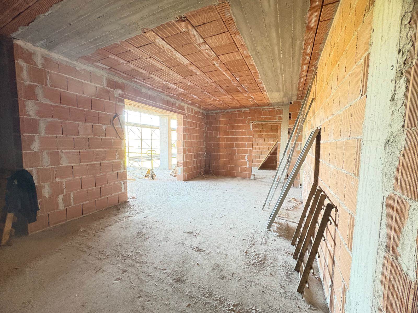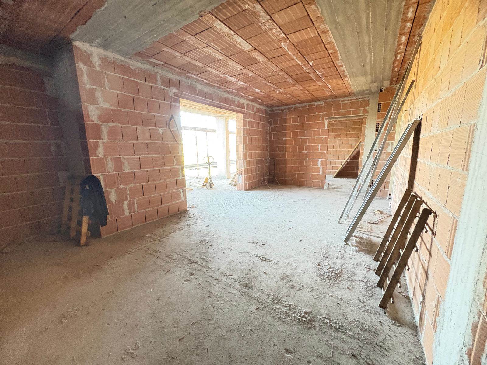 terra con ingresso direttamente sull’ampia zona living che ha accesso diretto al terrazzo abitabile con vista mozzafiato sulle campagne e sul verde che circonda la palazzina , cucina abitabile anch’essa con accesso al terrazzo , disimpegno a dividere la zona giorno dalla zona notte che verrà composta da 3 ampie camere da letto di cui due matrimoniali e una singola e due bagni uno principale con la finestra e l’altro senza finestra entrambi con box doccia . Grazie ad una leggere pendenza del terreno sfruttata molto bene dai progettisti la zona notte e contornata da un giardino perimetrale di 200 mq a corredo dell’appartamento . Tutta la palazzina è servita da ascensore