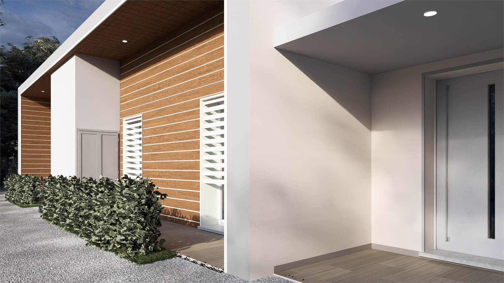 Pur essendo studiata nei minimi dettagli il progetto lascia la possibilità di personalizzazione al futuro proprietario su tutti quelli che sono i materiali di finitura potendo in questo modo partire da una casa costruita con un attento studio ma allo stesso tempo che lascia spazio alle proprie personalizzazioni per entrare ,alla consegna, nella casa dei propri sogni .