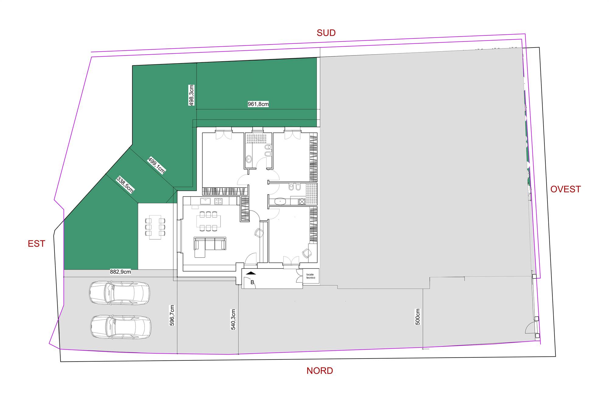 All’interno , la porzione, avrà un ampia zona living con porte finestre che permetteranno l’accesso al giardino privato , con una soluzione di continuità tra cucina e soggiorno , nonché della serra bioclimatica che potrà essere realizzata nel giardino a completamento della zona giorno , doppi servizi uno a servire la zona giorno , con finestra e box doccia l’altro a servire la zona notte sempre con box doccia , disimpegno a dividere la zona giorno dalla zona notte composta da 3 camere da letto , di cui 2 matrimoniali ampie e luminose con porta finestra per l’accesso all’esterno e la terza camera che sarà una camera singola .